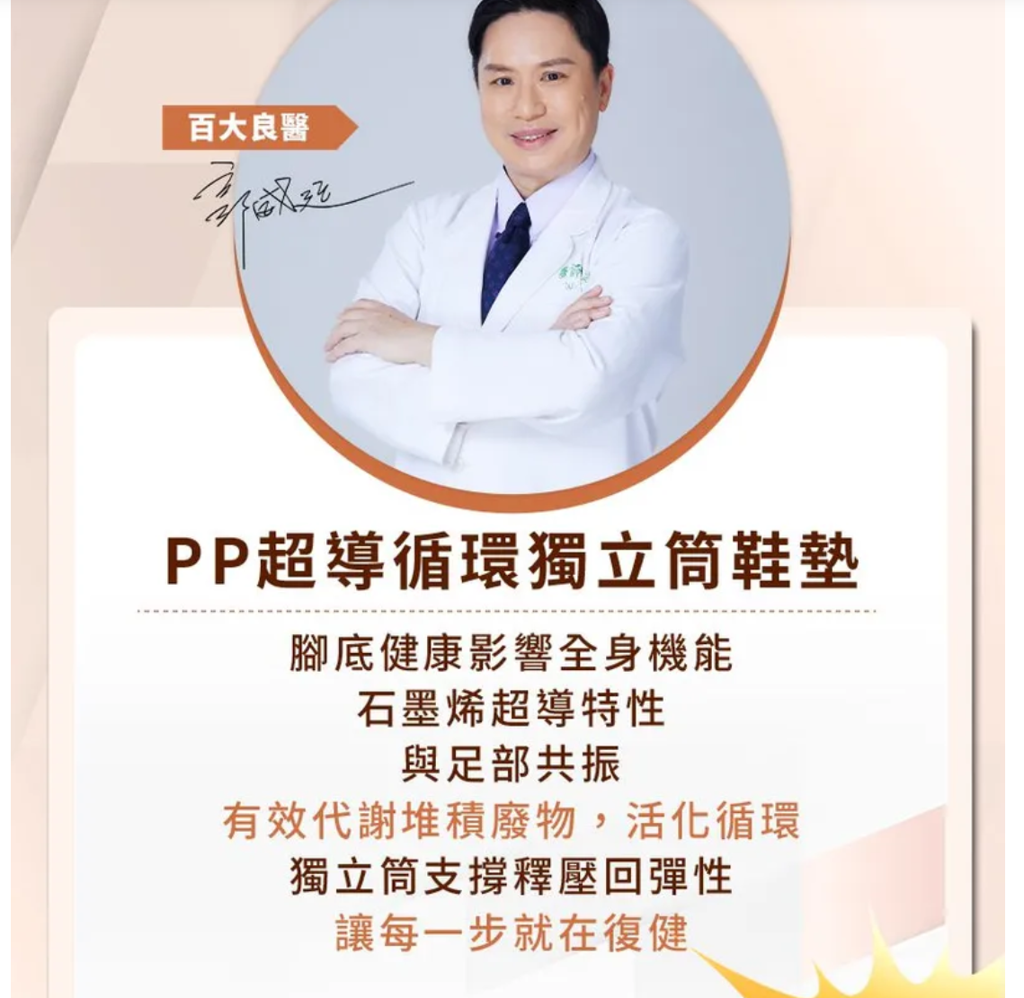 5分鐘前—PP石墨烯超導循環獨立筒鞋墊— 您隨身的足部按摩師!! , 150顆獨立筒 ⇉ 支撐身體 平均分散受力 ,HSG蜂巢式石墨烯⇉ 促進下半身血液循環 ,科技石墨烯面料 ⇉ 快速升溫 提高保暖度 ,打通腳底66個重要穴道, 刺激經絡穴脈 促進五臟六腑循環『腳若暖、全身通』 - 【今日限定】石墨烯鞋墊-女款-1雙 - NT$ 980