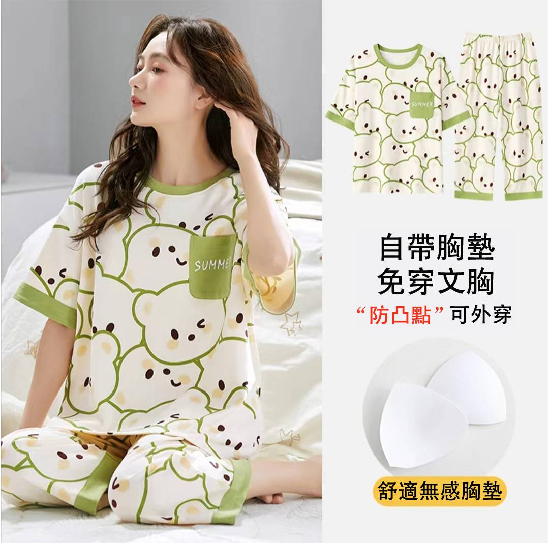15分鐘前限時搶購 【三花棉業】夏季冰絲睡衣套裝,自帶胸墊寬鬆大碼家居服,親膚雲感睡衣夏天外穿不悶熱!新品上市,限時搶購!買一送一~ - 三花棉業 🔥【超值推薦】:任選兩件贈三花天然香薰*2 僅需 NT$ 998