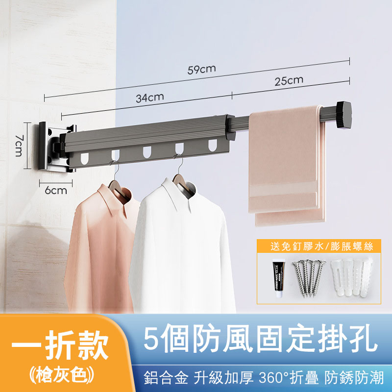 5分鐘前【不佔空間 晾衣神器】吸盤壁掛式鋁合金折疊晾衣架「免打孔 即吸即用」 - M【中長款 - 三段兩折】鋁合金壁掛式伸縮晾衣架 = NT$1299